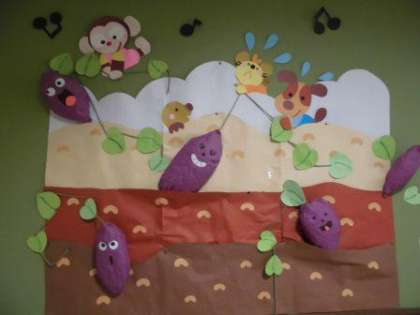 職員室前の掲示板には,・・・おいもさんが!みのりの秋です!深草小の子ども達も大きく成長してほしいです。勉強・スポーツ・趣味にがんばってくださいね!