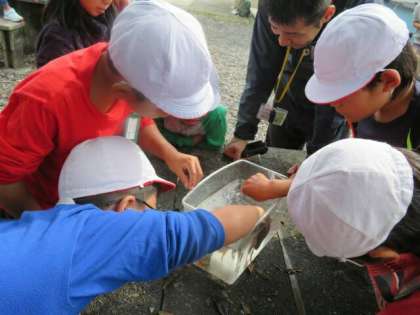10月16日(火)4年・みさきの家 2日目「かご漁3」水槽に入れて観察しました。