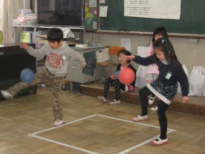 12月から練習を始めた昔遊びのうち,自分の得意な遊びを見てもらいました。