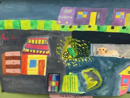 ・電気の周りを明るく見せるために明るい黄色などの色を使っているのが良かったです。くものすを描いてあるのもいいと思いました。