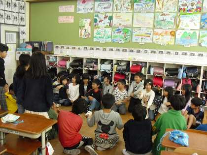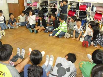 給食を食べた後は,「4年生主催」で「震源地ゲーム」を行いました。こちらもとても楽しくできました。次の交流は,「ほんの読み聞かせ」です。