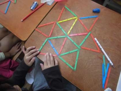 算数科「かたちづくり」の学習では,ぼうを使って形をつくりました。