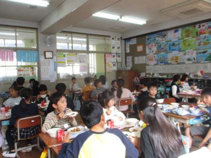 交流給食がありました。2年生は4年生と楽しくお話しながらおいしく給食をいただきました。