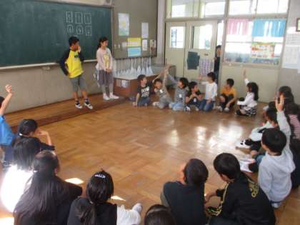 給食後は,みんなで「震源地ゲーム」をして交流を深めました。