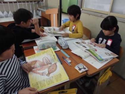 国語の時間に「まず」「次に」「さらに」「このように」などの言葉を使った文章を書く学習をしています。