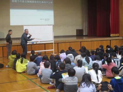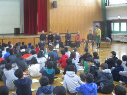 総合の学習では「深草竹取物語」というテーマで竹について学習しています。今日はゲストティーチャーの方々から竹ベンチについてのお話を伺いました。これから竹を使ってベンチを作っていきます。楽しみですね。