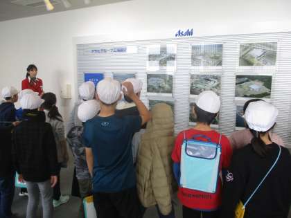 社会科の学習では工業について学習をしています。今日は吹田にある「アサヒビール工場」と横大路にある「朝日新聞社」の見学に行きました。