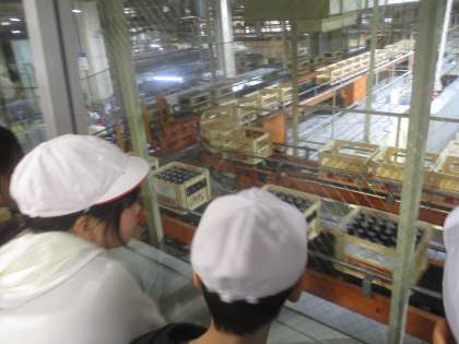 「アサヒビール工場」ではビールができるまでの過程を見させてもらいました。機械を使って,ビールが缶やびんに詰める様子に驚きの声が上がっていました。