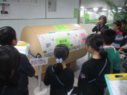 「京都新聞社」では新聞が出来上がるまでの様子を見学しました。大量の新聞が短時間で作り上げられていることを学習できました。お土産もたくさんいただき,大満足の社会見学となりました。