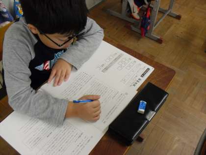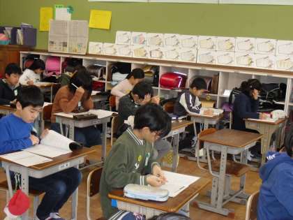 新年早々に,国語・算数・理科・社会のジョイントプログラムのテストを行いました。みな真剣に問題を解いていました。