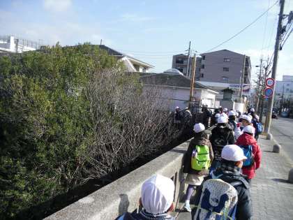 今日は疏水沿いを,深草小学校から「伏見インクライン跡」を経て三栖閘門まで歩きました。疏水がくねくね曲がっていたことや,伏見にも本当にインクラインがあったことなどたくさんのことを知ることができました。