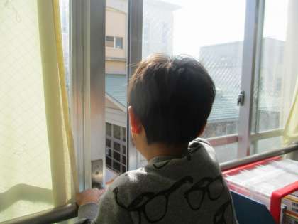休み時間は窓を開けて換気をしています。