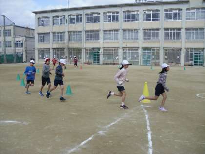 4分間を自分の走るペースを考えて,走っています。寒さに負けず,走り方を工夫して一生懸命に走っています。