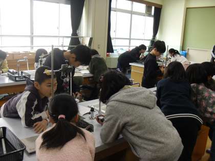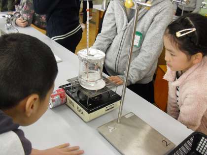 理科室での実験も慣れてきました。今回は,水がどのようにすがたをかえるのかを実験しています。さてさて,水はどのように姿をかえるのでしょうか。