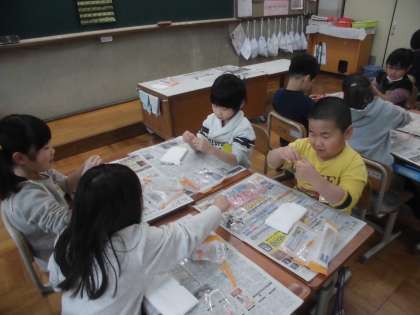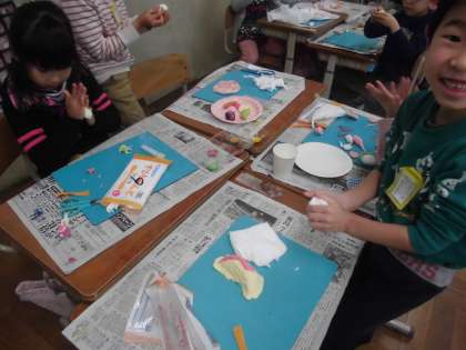 紙粘土に絵具を混ぜてごちそうを作っていきます。