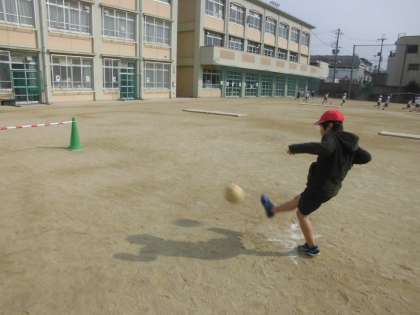 体育科「ボールけりあそび」の学習が始まりました。今日は,蹴り方をしっかり練習しました!