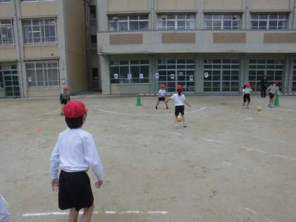 最近,体育の日は雨が多いですが,乾いているところを使って練習をしています。