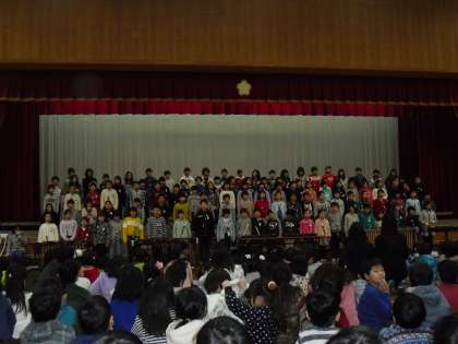 まずは合唱「ミスター・ポストマン」難しい今日でしたが,4年生らしく元気よく歌いました。2曲目は,リコーダー演奏「365日の紙飛行機」美しい音色で心を合わせて演奏しました。合奏「ラ・クンパルシータ」リズムよく,はぎれよく演奏しました。3曲とも大成功!!すばらしかったです。