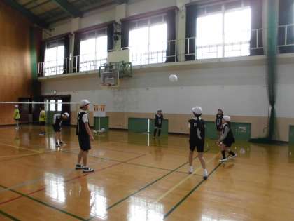 体育の時間にソフトバレーボールをしています。パスが続くとすごくうれしそうです。