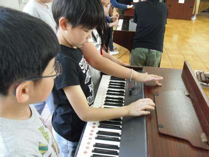 グループに分かれて,1人ずつオルガン演奏にチャレンジしました。ドレミファソラシド。リズムよくひけたかな?