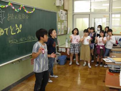 今日は,4月のお誕生会でした。お楽しみ係を中心に,皆で誕生会を楽しみました。