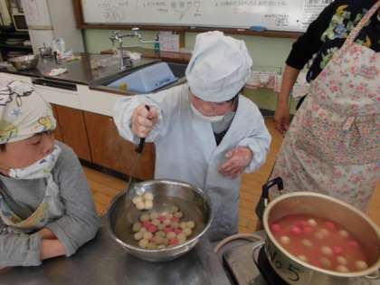 一つ一つ細かくちぎり,丸めていきました。どんな味のお団子ができるのか楽しそうに作っていました。