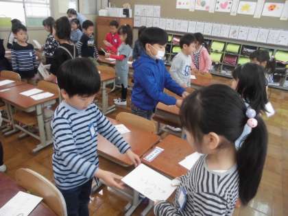 渡し方や言葉を考えて自分で作った名前カードを渡しました。