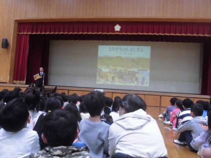 5月は憲法月間ということで,憲法に関係するお話がありました。1年生には少し難しかったかもしれませんが,しっかりと聞いていました。