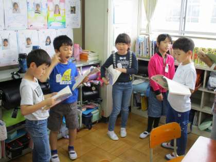 国語科「きつつきの商売」の音読発表会に向けて練習を頑張っています。