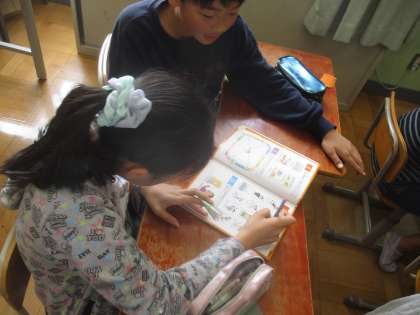 外国語は中辻先生と一緒に学習を進めています。毎回楽しいゲームやアクティビティを準備していただき授業は大盛り上がりです。