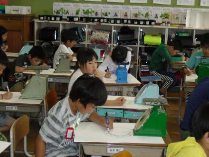 今日は,はかりをスケッチしました。細かいところまで,しっかり見て描いていました。計量の図画につなげていきます。