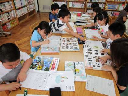 身近にいる小さな生き物が,どんなところにいるのか,図鑑や本で調べました。すみかや食べ物など,初めて知って驚いていました。調べることが楽しくなってきました。