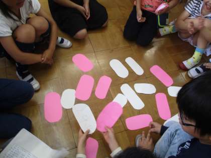 仲良しグループ活動で,たてわり交流をしました。2年生は,1年生と6年生とです。6年生が考えてくれたゲームをして,楽しく過ごしました。