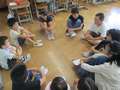 なかよしグループ活動がありました。6年生は1年生・2年生とグループを組んで活動します。今日は第一回目ということで,自己紹介をした後に,名前を覚えるためのゲームやクイズを行いました。これからもっと仲を深めていきましょう。