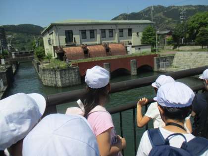 三井寺駅に着き,琵琶湖疏水の取り入れ口を見ました。ここから琵琶湖疏水のスタートです。