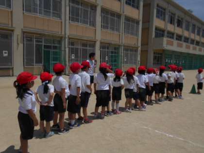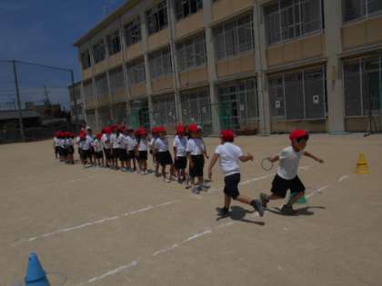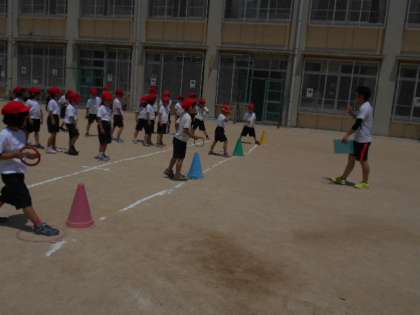 体育科「リレー遊び」の学習では,6月にあるリレー大会に向けて,各クラス一丸となって頑張ります!