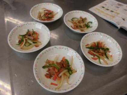 献立は野菜炒めです。家庭科室には,食欲をそそる香りが漂っています。