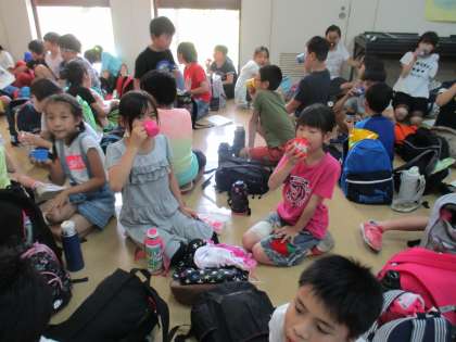 浄水場内の見学が終わり,最後にできたての水をいただきました。とてもおいしそうに飲んでいました。