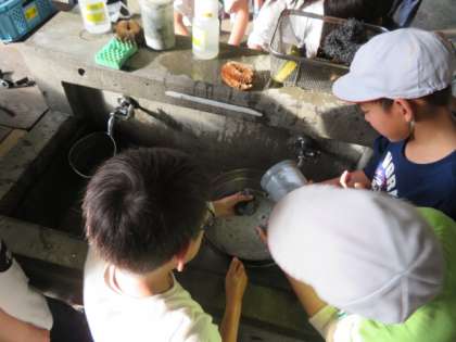 カレーを食べ終えると,みんなで協力して後片付けをします。