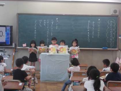 国語科「はなのみち」の音読発表会をしました。一人ずつ決まった役割をみんなに聞こえる声で読んだり,読み方を工夫して読んだりしました。