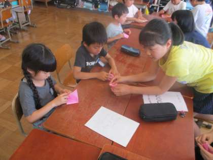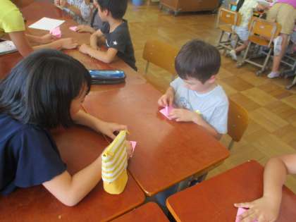 2回目のなかよし活動を行いました。今回は修学旅行に向けて1・2年生と一緒に折り鶴を折りました。2回目ということもあり進行もスムーズで会話も弾んでいるようでした。