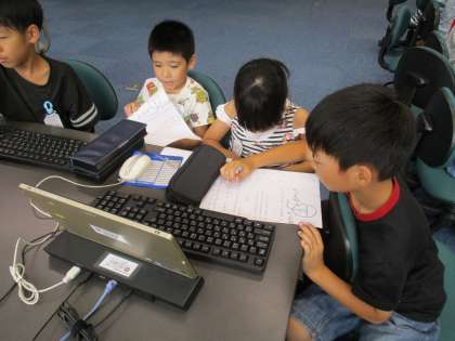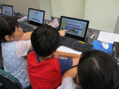 初めてパソコンを使う子どもたちも見られ,熱心に調べていました。