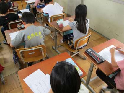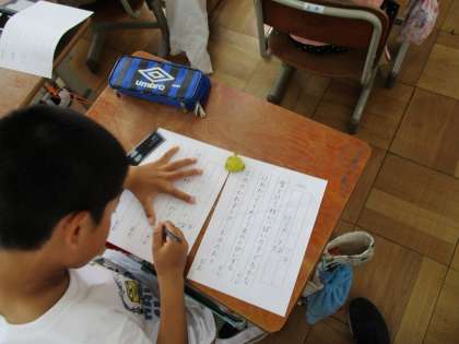 鉛筆で見本を見ながら丁寧に書く練習をしました。みんな集中して書いていました。