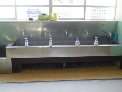 梅雨の頃,健康保持のため手洗いの励行を声掛けしています。