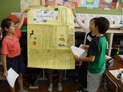 明日の参観では,1グループずつ発表します。子どもたちの頑張る姿をぜひ見にいらしてください。