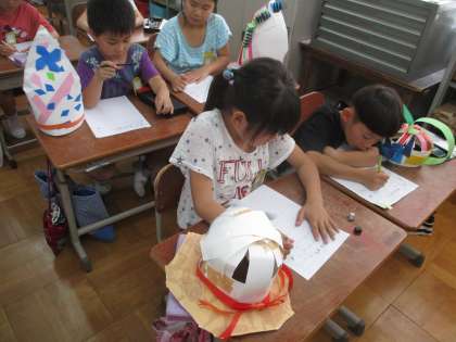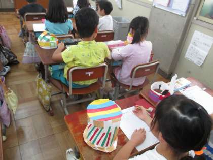 土曜参観で観ていただいた「すてきな帽子」が完成しました!みんな,思い思いのとてもかわいいお気に入りの帽子ができてうれしそうでした。工夫したところや,見てほしいところを発表しました。