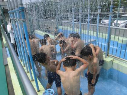 学習が終わった後はシャワーでよく頭や顔を洗って教室に戻ります。