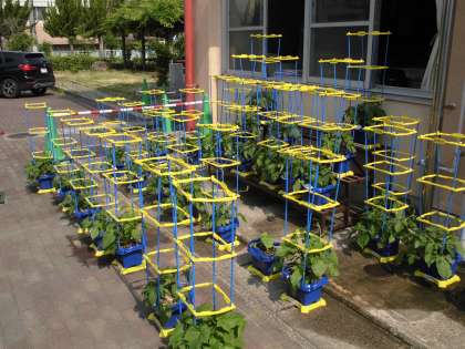 ツルもグングン伸びてきているので支柱を立てました。つぼみも見え始めているので開花が楽しみです。