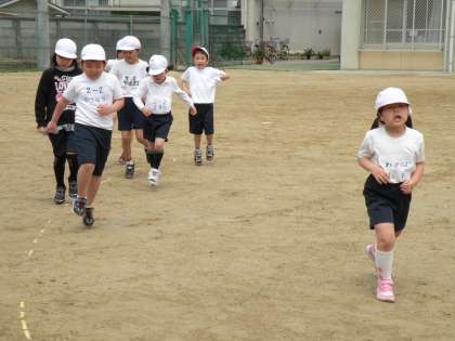 はじめ,運動場のトラックを使ってスキップやギャロップをしながら体ならしをしました。