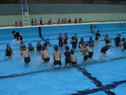 今日は,ワニ歩きや水のかけあいっこをしました。